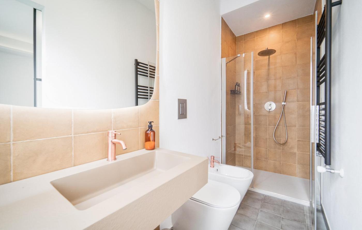 Camera Matrimoniale Superior. The fully equipped kitchen has a stovetop, a refrigerator, a dishwasher and kitchenware. The double room features air conditioning, a washing machine, a terrace with sea views as well as a private bathroom boasting a shower. The unit has 2 beds. ;