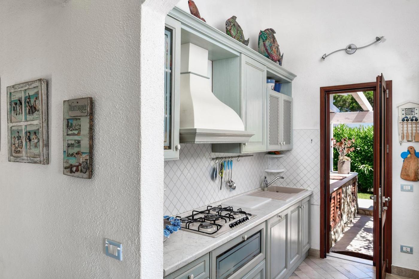 Villa con Vista Mare. The fireplace is a top feature of this villa. Boasting a private entrance, this air-conditioned villa comes with a kitchen, 3 bedrooms and 2 bathrooms with a bath and a shower. Guests will find a dishwasher, kitchenware, an oven and a toaster in the kitchen. The villa also includes a barbecue. The villa features a washing machine, a coffee machine, a safe deposit box, a TV with cable channels, as well as sea views. The unit has 5 beds.