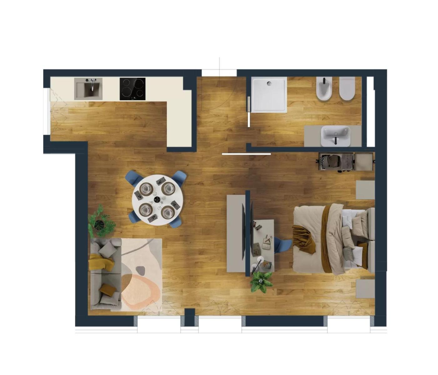 Questo appartamento con aria condizionata comprende 1 camera da letto, un soggiorno, una cucina con utensili, frigorifero e macchina da caffè, e 1 bagno con bidet e doccia. A disposizione troverete una TV a schermo piatto.