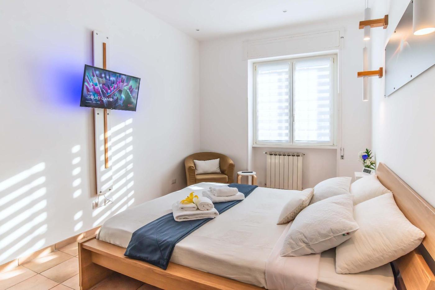 Appartamento con 1 Camera da Letto. Boasting a private entrance, this air-conditioned apartment comes with 1 living room, 1 separate bedroom and 1 bathroom with a shower and a bidet. The well-fitted kitchen features a stovetop, a refrigerator, kitchenware and a microwave. The apartment has tiled floors, a seating area with a flat-screen TV, a washing machine, a tea and coffee maker as well as sea views. The unit has 1 bed.