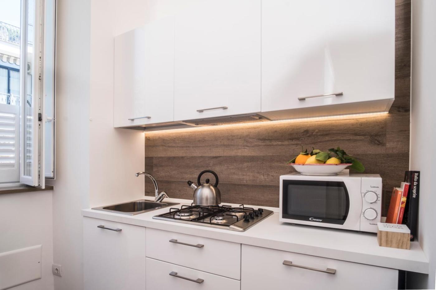 Monolocale Deluxe. The studio offers a dining area, a wardrobe, as well as a private bathroom featuring a shower and a bidet. Guests can make meals in the kitchen that comes with a stovetop, a refrigerator, kitchenware and an oven. The air-conditioned studio provides a flat-screen TV, a washing machine, a private entrance, soundproof walls as well as garden views. The unit offers 1 bed. ;