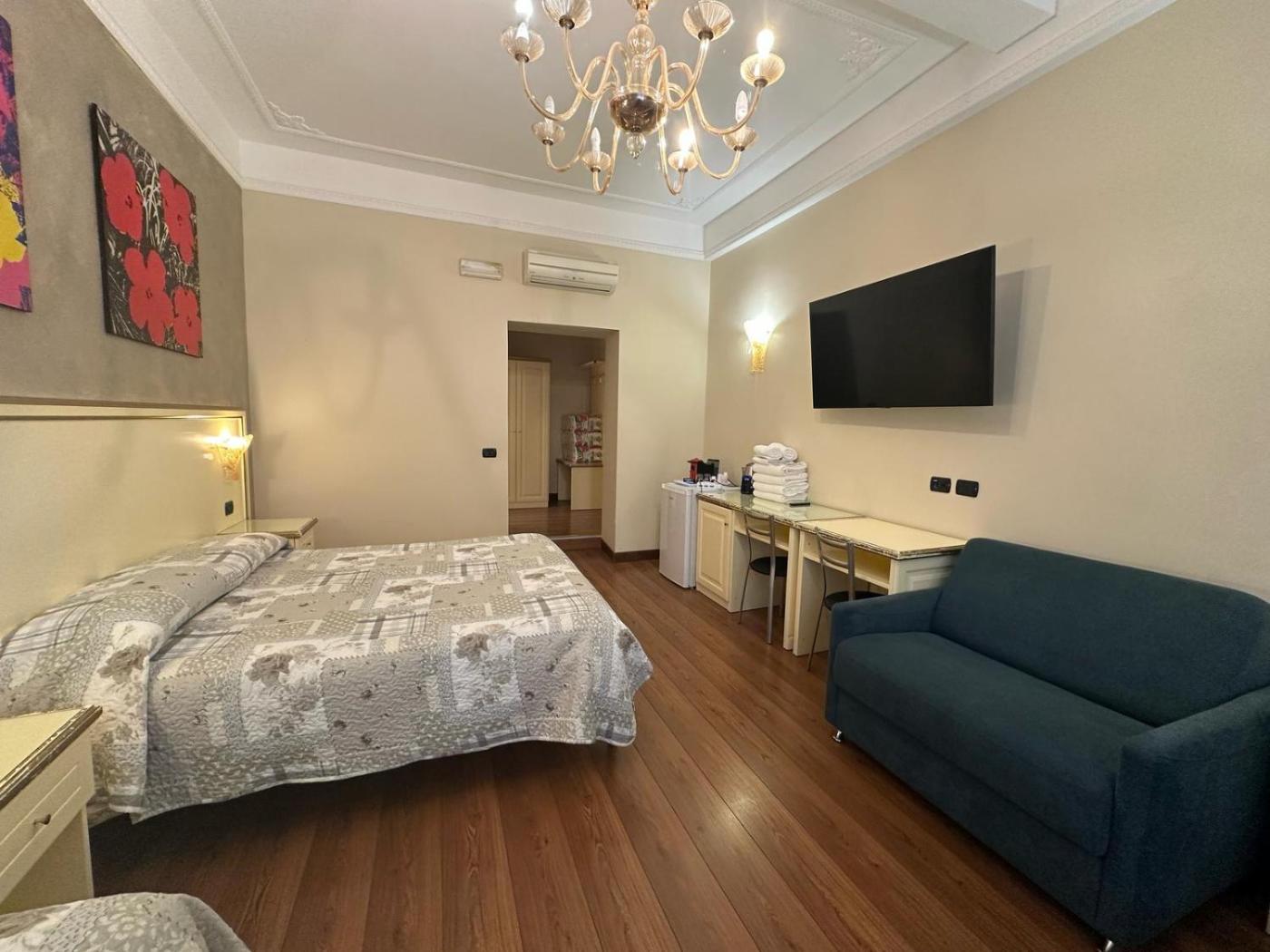 Camera Quadrupla con Bagno. The quadruple room provides air conditioning, soundproof walls, as well as a private bathroom featuring a shower and a bidet. This quadruple room features a wardrobe, heating and a flat-screen TV. The unit offers 2 beds and 2 futons. ;